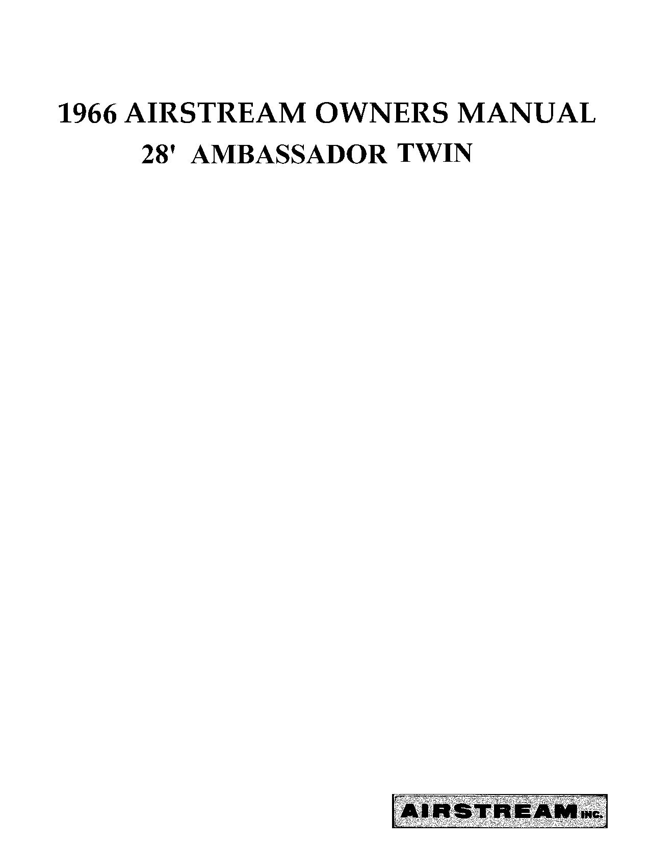The 1966 AIRSTREAM 28 Ambassador Twin owner’s manual contains information on the operation and location of controls, a