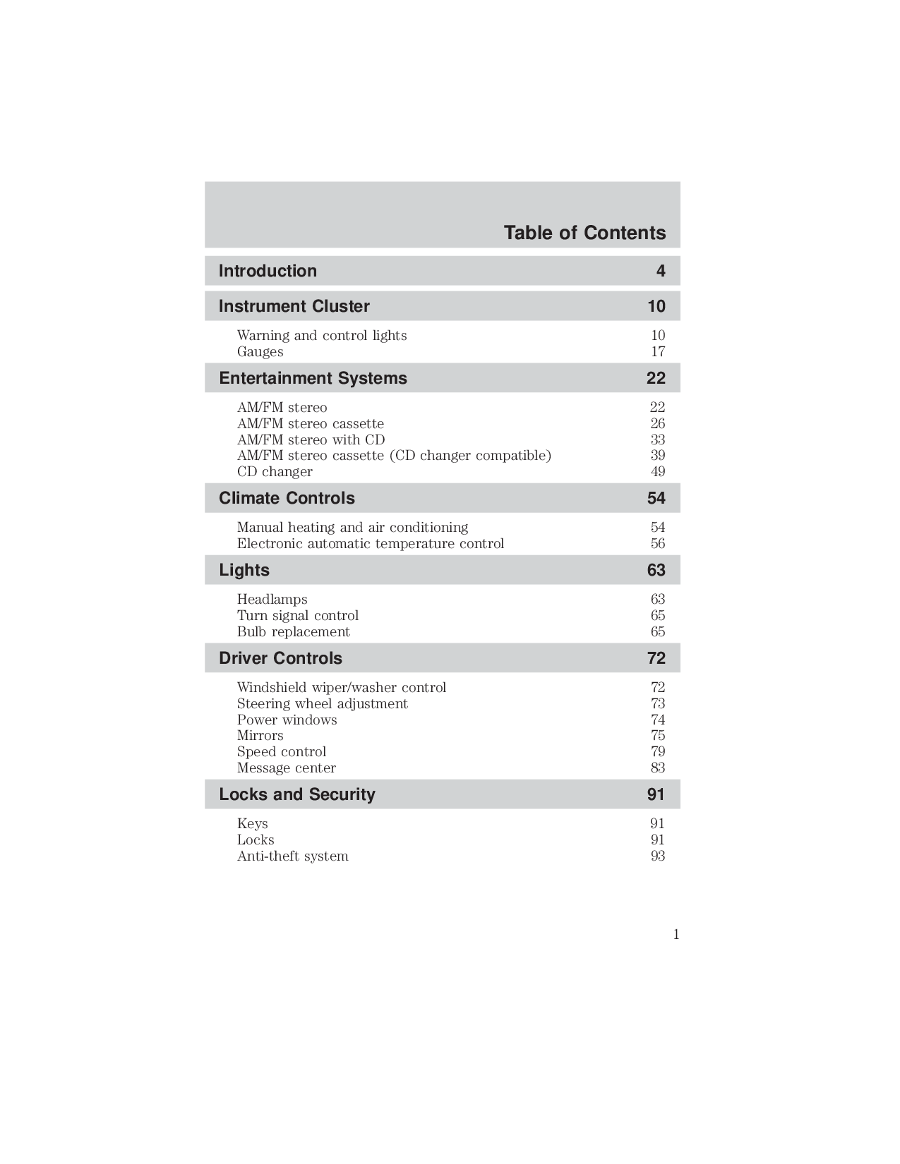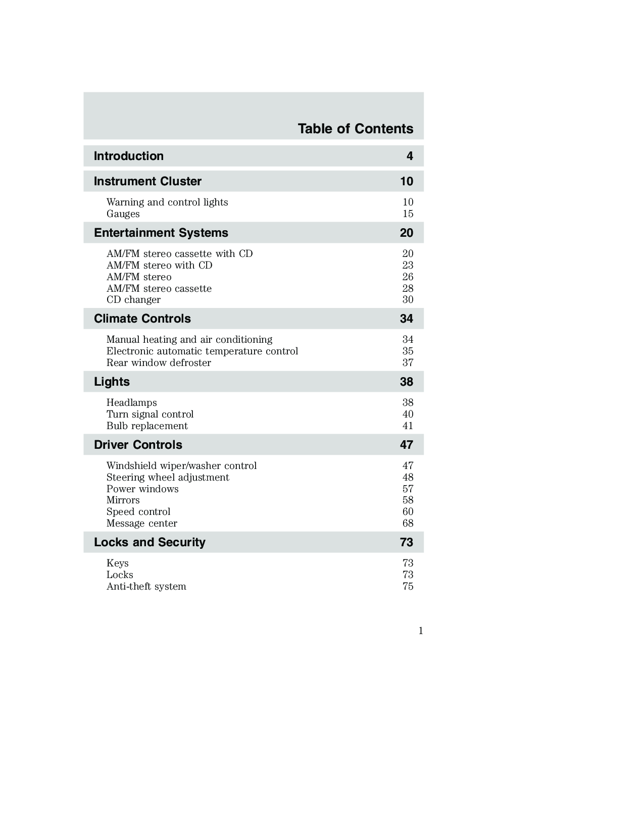 The 2003 FORD Crown Victoria owner’s manual contains information on the operation and location of controls, a maintenance