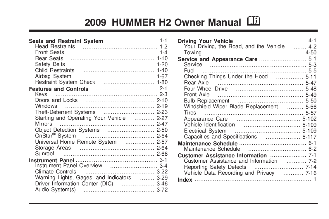 Free manuals for your car » HUMMER » 2009 » 2009 HUMMER H2 PDF