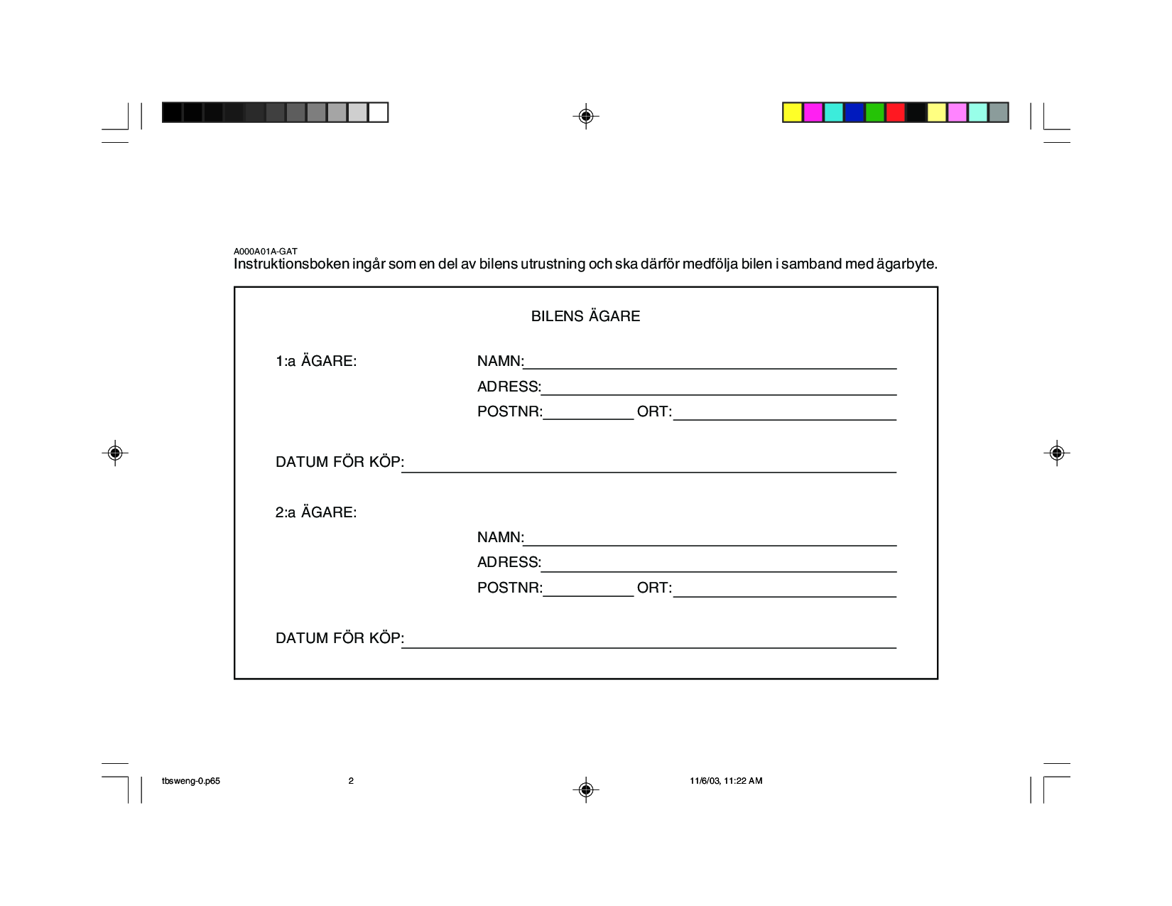 The 2003 HYUNDAI Elantra Agarmanual Swedish owner’s manual contains information on the operation and location of controls, a