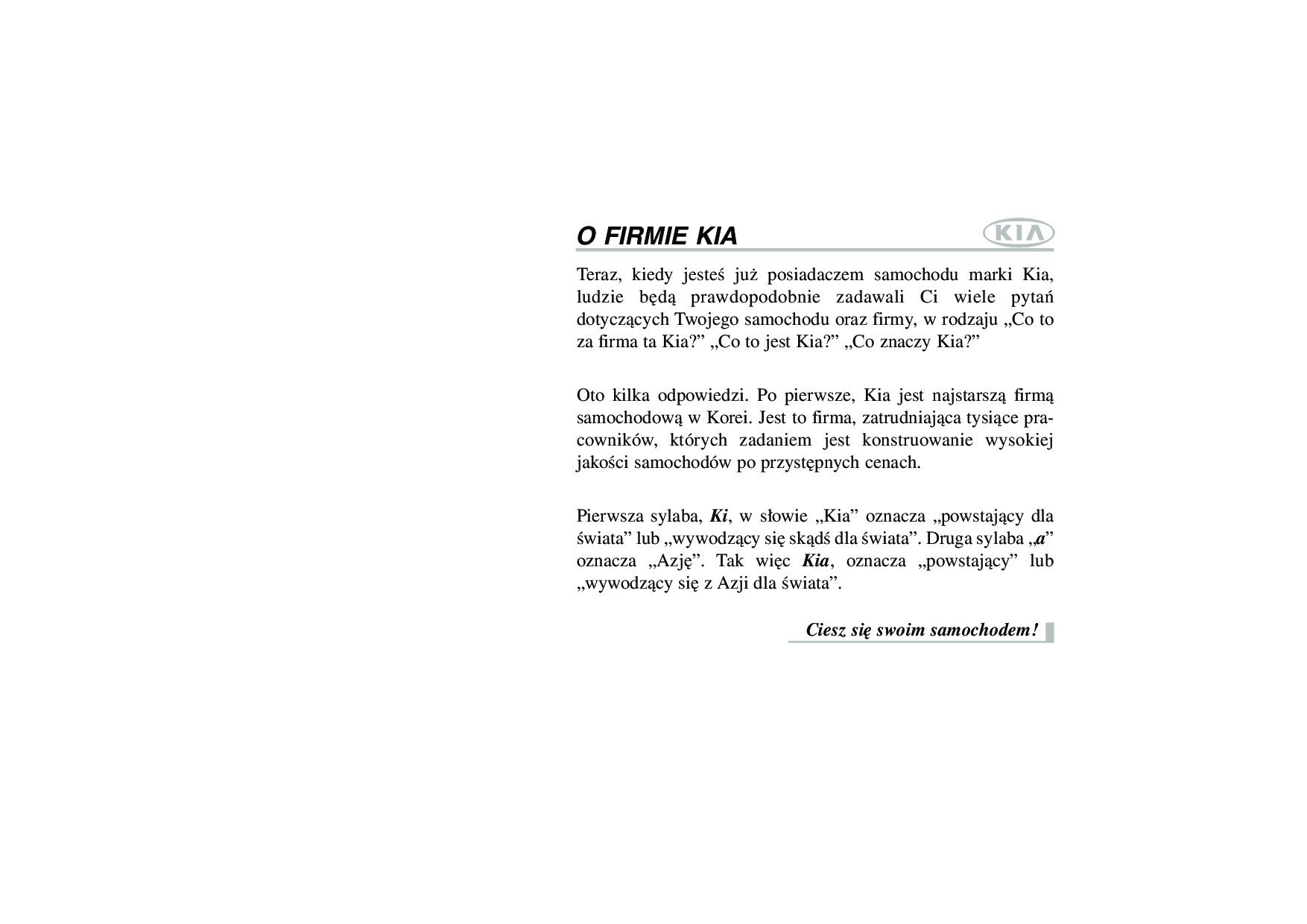 Free manuals for your car » KIA » 2004 » 2004 KIA Picanto Instrukcja Obslugi Polish PDF