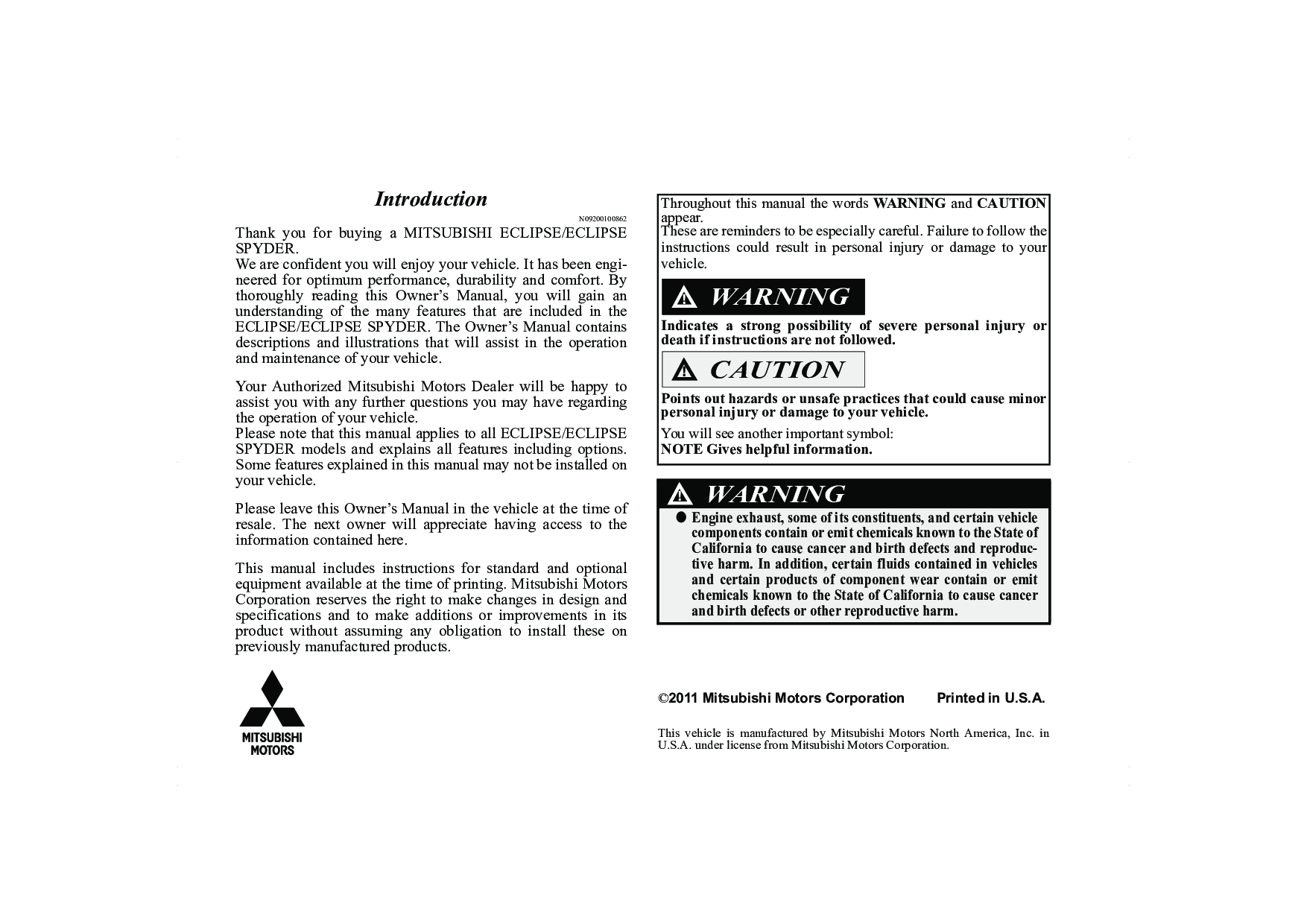 Free manuals for your car » MITSUBISHI » 2012 » 2012 MITSUBISHI Eclipse Spyder PDF