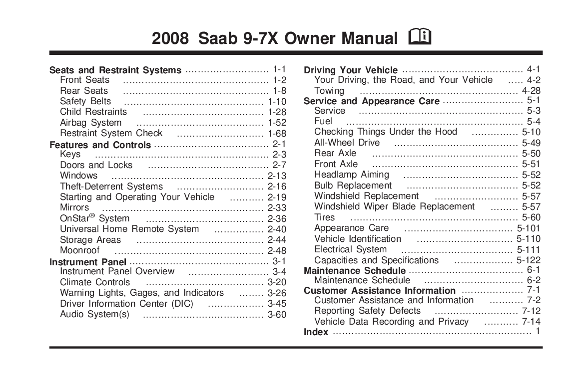 Free manuals for your car » SAAB » 2008 » 2008 SAAB 9 7X PDF