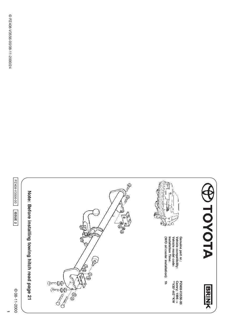 The 1996 TOYOTA Camry Towing Hitch Detachable owner’s manual contains information on the operation and location of controls, a
